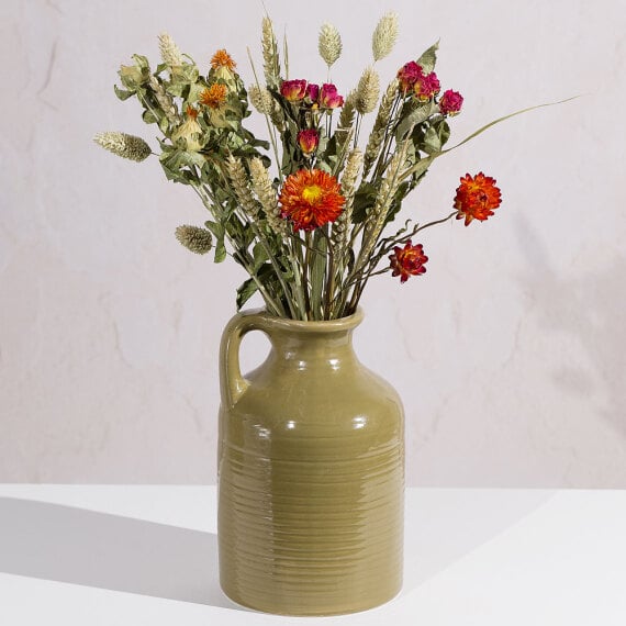 An enchanting mix of preserved seasonal blooms in warm autumn shades, featuring vibrant orange and soft pink. Complemented by delicate cream flowers and natural foliage, this dried bouquet brings the beauty of an autumn meadow indoors. Our letterbox flower gifts are delivered in specially designed letterbox friendly packaging and protected by fully compostable brown paper wrap, ensuring a wonderful and creative gift for the recipient.